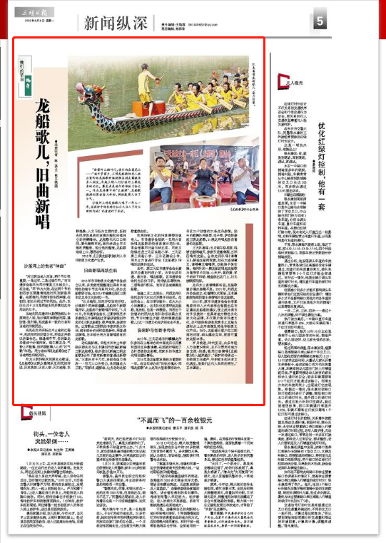 “五月端阳,百花开哎百花开哎,沙溪那个两岸彩旗飘,龙船那个新歌唱开怀,龙船那个新歌唱开怀哎。”5月25日,市非遗学会会长、三明学院艺术系教授王本谦唱起这首曾获省级创作奖的《三明龙船歌》,歌声雄浑,曲调欢快。这首歌由三明民俗专家宋经文作词,前半部分的词和曲是新作,用普通话演唱,后半部分用方言演唱原有的龙船歌。