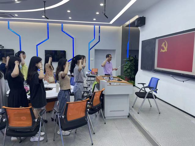 讲座后,庄孝谦老师参加英语专业学生党支部主题党日活动,带领党员们一起重温入党誓词,回忆入党初心