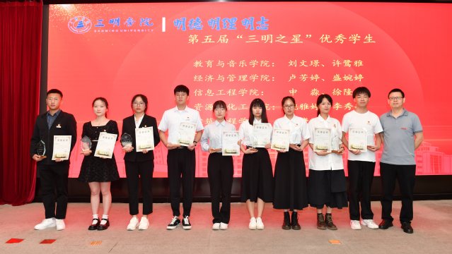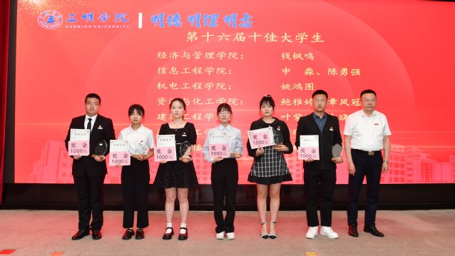 会上,学工部负责人宣读了《三明学院关于表彰第十六届“十佳大学生”“王任享院士奖学金”的决定》《三明学院关于表彰第五届“三明之星”优秀学生人选的决定》,获奖学生代表上台接受颁奖。