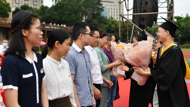 诗歌表意,鲜花寄情。教师代表被邀请上台,毕业生代表们为老师献上了鲜花并深情朗诵《难忘明院》,表达对师恩、对母校浓浓的感激和校园生活深深的留念。