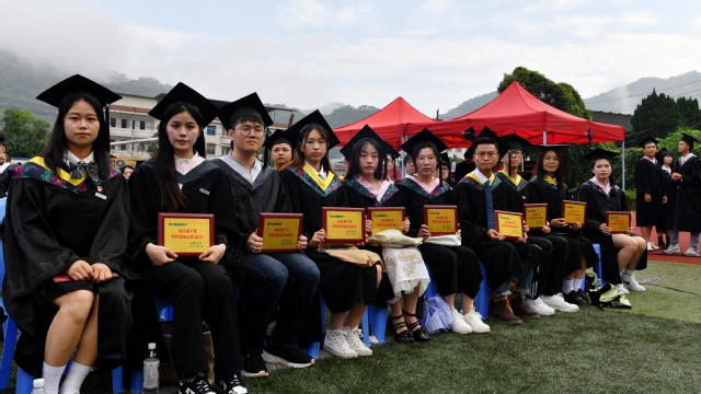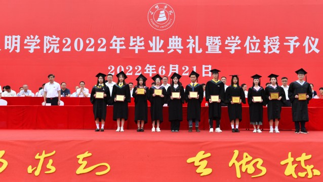 伴随着庄严的国歌声,典礼拉开帷幕。张君诚副校长先后宣读了《三明学院关于准予张紫玲等3419名2022届同学毕业的决定》、《三明学院关于授予李荣付等3416名2022届本科毕业生学士学位的决定》;廖景榕副书记宣读了《三明学院关于表彰2022届优秀毕业生的决定》、《三明学院关于表彰“十佳毕业论文(设计)”的决定》、《三明学院关于表彰2022届考取硕士研究生同学、考研优胜专业的决定》。毕业生代表和获表彰师生依次上台领取了毕业证书和奖状。
