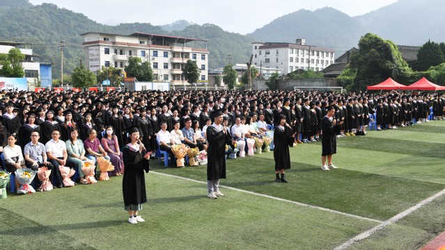 文化传播学院播音与主持专业邱淑玲作为毕业生代表发言,她回忆了大学四年的学习生活,讲述了自身的成长与发展,表达了对老师、同窗四年陪伴与帮助的感激。教师代表、机电工程学院院长高浩教授在发言中表达了对2022届全体毕业生顺利毕业的祝贺,并送给毕业生“修德”、“学习”、“吃苦”等关键词,希望同学们能够在今后的人生道路上顺心顺遂。校友代表、“全国应急管理系统先进工作者”、2003级资源与化工学院化学工程与工艺专业毕业生陈华森在发言中回忆了美好的大学生活,表达了对辛勤培育学子的母校和领导老师由衷的感谢和崇高的敬意,他通过自身工作经历告诉毕业生“只有脚踏实地、勤勉努力才是赢取成功、把握幸福、造就人生的最佳路径”,他勉励学弟学妹们在实干奋进中超越自我,在引领创新中做中流砥柱,把奋斗的底色铺满人生征途,用硬核本领镀亮青春本色!