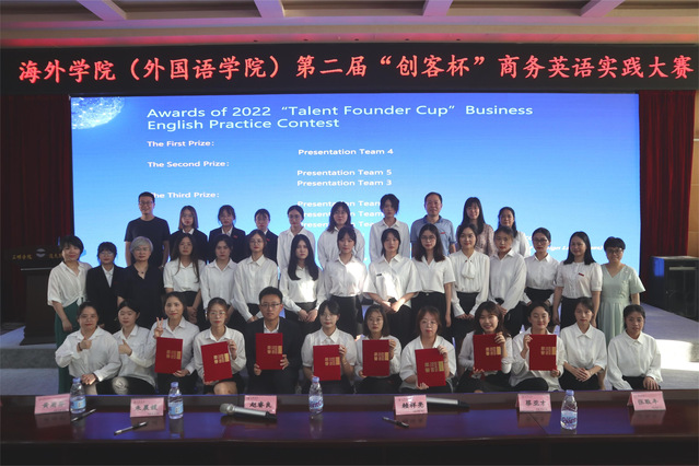 为进一步提高海外学院(外国语学院)商务英语专业学生综合商务实践能力,实现集中实践课程与相关专业能力竞赛相结合之教学改革,深化校企合作、产教协同育人实践,鼓励商务英语专业学生立足企业、学以致用、创新思维,锻炼商务英语综合实践能力,成为具有创新性的应用型复合商务人才。海外学院(外国语学院)第二届“创客杯”商务英语实践大赛于2022年6月23日下午在校图书馆学术报告厅举办。本次大赛由福建创客天成实业有限公司冠名赞助。教务处负责人、海外学院(外国语学院)党委书记蔡亚才、张敬丰院长、蔡瑞珍副院长及商务英语系教师、2020级商务英语专业学生出席观摩大赛。
