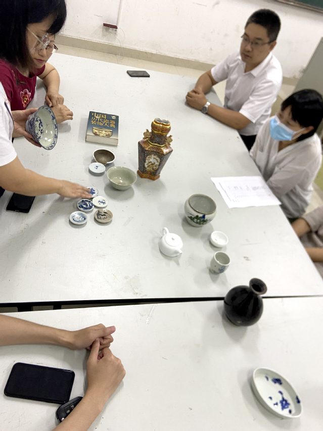 中国古代陶瓷在世界文明史上占有一席之地,是当今艺术收藏的“香饽饽”。6月22日下午,艺术与设计学院产品与服装设计系教工党支部于博学楼115教室开展“传习中国文化 探析陶瓷技艺”主题党日活动,以瓷为媒积极响应教育部《关于开展中华优秀传统文化传承基地建设的通知》以及国务院办公厅《关于实施中华优秀传统文化传承发展工程的意见》的文件精神,结合支部专业建设特色,赏析传统制瓷工艺,激励广大党员教师践行工匠精神。