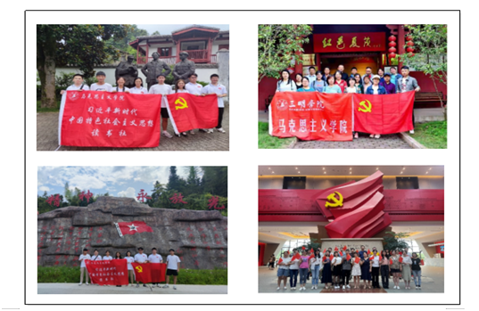 一声号角结队伍。党员教师积极响应总支号召,组建团队,集中力量进行课程开发、教学改革和项目申报。同时与省内外高校、地方单位在提升区域红色文化发展的影响力和辐射力等方面开展广泛而深入的交流合作。福建省高校红色文化教育研究基地和三明市红色文化研究中心挂靠在学院;与武汉理工大学、井冈山大学共建红色文化协同创新中心,至今已共同举办连续三届的“中国红色文化传承与创新发展全国学术研讨会”;和福建师范大学马院共同举办“迎接建党100周年‘弘扬建党精神 传承红色基因’全国学术研讨会”;牵头与三明市另外两所高校马院和多所中小学结对共建;和三明市博物馆、宁化长征公园、建宁中央苏区反围剿纪念馆、沙县区夏茂镇人民政府等共建实践教学基地。