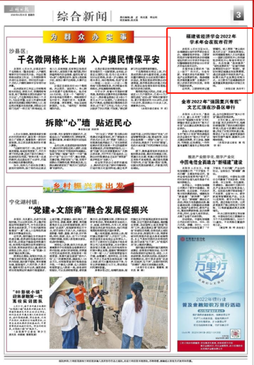 本报讯6月25日至26日,由福建省社会科学界联合会主办,福建省经济学会、三明学院经济与管理学院承办的福建省社科联2022年学术年会分论坛暨福建省经济学会2022年学术年会在我市召开。