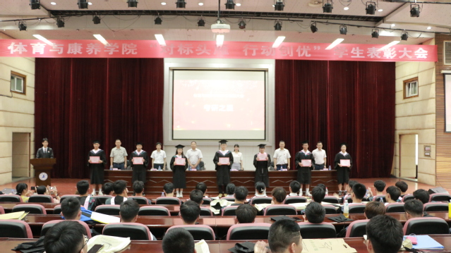 6月20日,体育与康养学院在行政附楼学术报告厅举办“对标头雁 行动创优”学生表彰大会暨2022届毕业生欢送会。表彰过去一学年在考研升学、各类竞赛、专业学习、社会实践、志愿服务等方面取得了诸多突破和优异成绩的各年级学生,引导在校生向头雁看齐,用行动创优,书写更加美好的大学篇章。同时向2018级全体毕业生赠送了带有每个人姓名的书签留念;进行了最后一次“点名”;组织了全院和班级毕业合影,让全体毕业生感受到满满的毕业“仪式感”。
