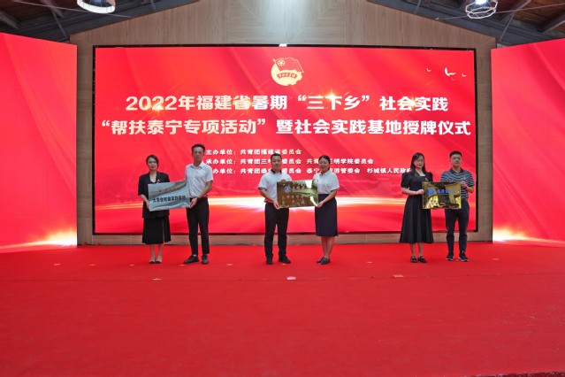 仪式上,林珊向11支高校实践团队代表授旗。三明市后生仔宣传团成员做泰宁社会实践基地推介。三明学院体育与康养学院教师、奥运冠军柯丽婷代表实践团队指导老师上台发言。三明学院、福州大学、泉州师范学院、闽南师范大学、福建商学院、莆田学院等六所高校向泰宁团县委授予社会实践基地牌匾。