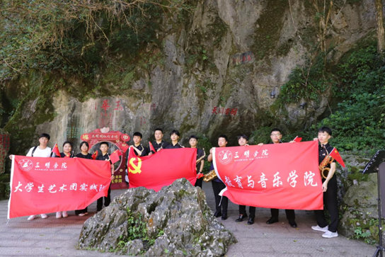 活动期间,“文旅+音乐产业”暑期社会实践队成员走近将乐县文化馆剧场,寻访爱国主义教育基地——玉华洞,充分感受当地特色历史传统文化与独特的红色记忆,深入了解“程门立雪”“李寄斩蛇”等将乐县传统文化典故,领略了北宋理学家杨时所著诗《游玉华洞》中“苍藤秀木绕空庭,叠石层峦拥画屏。混沌凿开幽窍远,巨灵分破两峰青。”的玉华美景。不仅提升了同学们的音乐专业素养,还拓宽了同学们的文化知识视野。