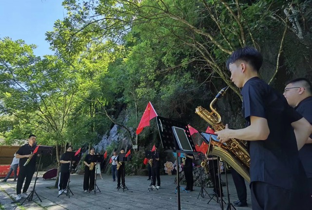 此次活动在三明市将乐县文化馆馆长陈圣洁和三明学院青年教师梁思宇的共同指导下顺利开展,分别于将乐县文化馆剧场与玉华洞景区举办了两场萨克斯专场音乐会,实现“高雅文化”走进“文化古邑”,在暑期为当地人民带来了一场与众不同的音乐体验。此外,音乐会上,梁思宇老师与台下观众积极互动,不仅讲述了萨克斯演奏的相关知识,同时对三明学院的校园环境、师资力量进行了大致介绍,使现场观众在对音乐产生新认识的前提上,对三明学院也有了更进一步的了解。