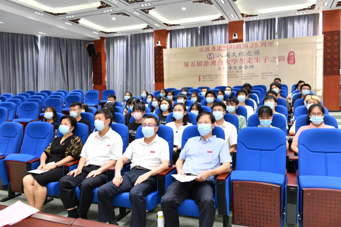 8月11日,作为香港特别行政区庆祝香港回归祖国25周年系列活动之一——第五届港澳台大学生走朱子之路研学营在福建省福州市开营。香港中联办教育科技部副部长徐凱,港区省级政协委员联谊会会长施荣怀,省政协常委、香港朱子文化交流协会会长、研习营团长、三明学院1980级英语专业校友朱向与福建省委常委、常务副省长郭宁宁,省政协副主席杜源生等相关方面负责人,以及來自10余所闽港澳台高校学子代表,共同参加了开营仪式。
