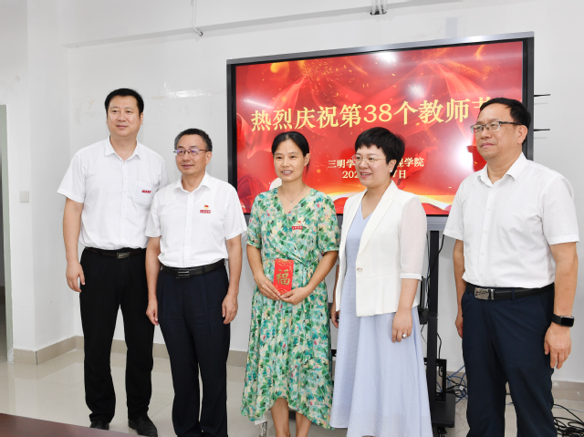 9月7日,在第38个教师节来临之际,三明市人民政府副市长林菁莅临我校看望慰问福建省优秀教师、我校信息工程学院林丽华副教授,代表市委市政府送上节日的祝福和良好祝愿。校党委书记赖锦隆、副校长吴龙陪同慰问。