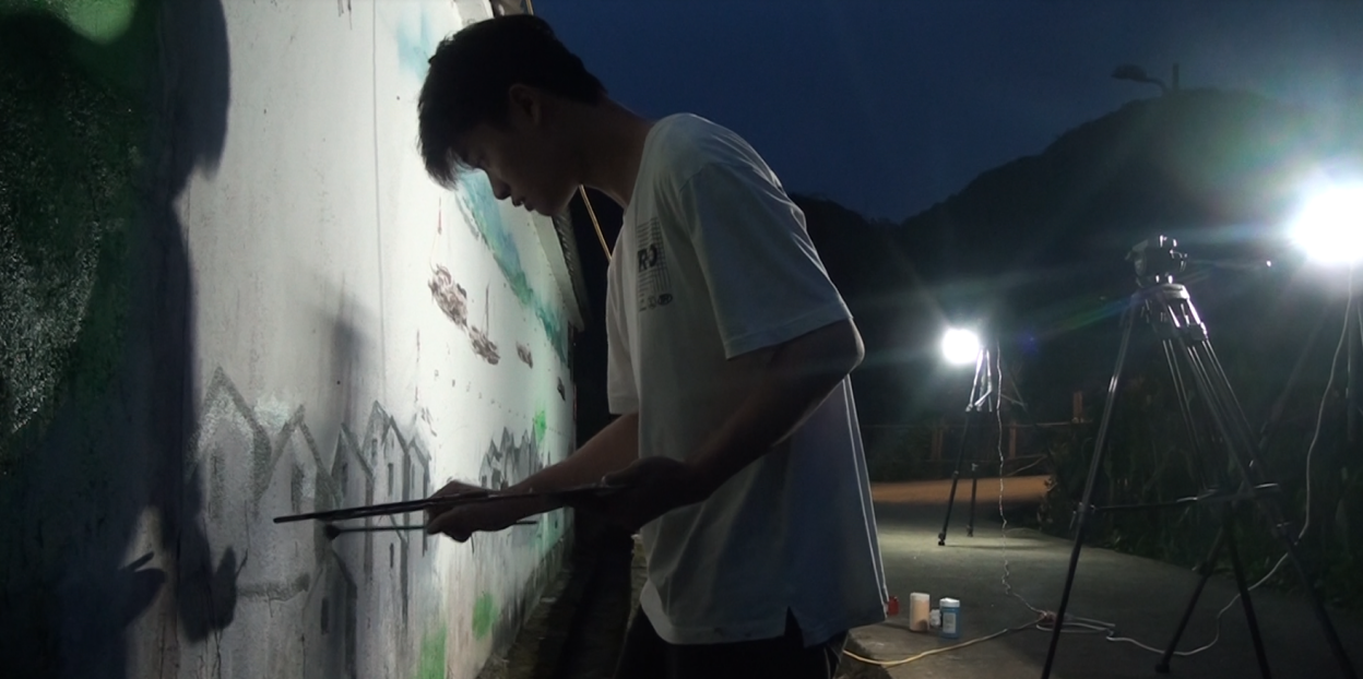“人民墙绘乡村振兴”墙绘作品绘制需要前期确定墙绘位置、尺幅,将池潭 村的文化美景进行作品的创意构思,再到构图上色、调整作品细节等。这些不仅 是对实践队员们专业技能、审美素养的检验,也是对个人体能意志的考验,后期 结合动画专业特点,还将结池潭村创作出IP。