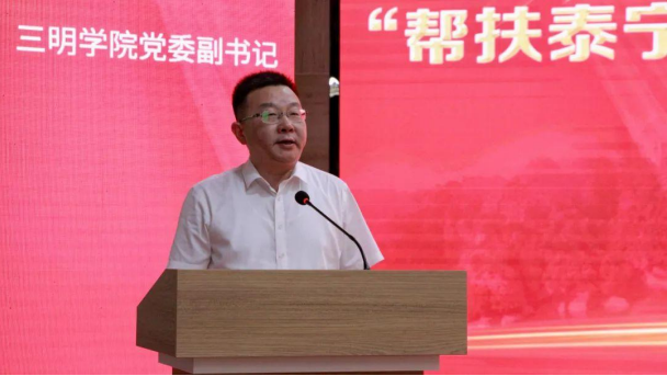 7 月 7 日上午,由共青团福建省委主办、三明团市委、三明学院团委承办的 2022 年福建省暑期“三下乡”社会实践“帮扶泰宁专项活动”暨社会实践基地 授牌仪式于福建省三明市泰宁县杉城镇耕读李家耕读学堂隆重召开。三明学院党 委副书记廖景榕、三明团市委副书记林珊、泰宁县委副书记乐仁昌等领导嘉宾共 同出席本次启动仪式。 “把青春华章写在乡村大地上!”铮铮宣言中,三明学院艺术与设计学院“喜 迎二十大,永远跟党走——乡村动漫实践团“知乡村,绘乡村,兴乡村”一行 6 人在指导老师张欣宇和带队老师张静的带领下开启寻访红色足迹、助力乡村发展之行。