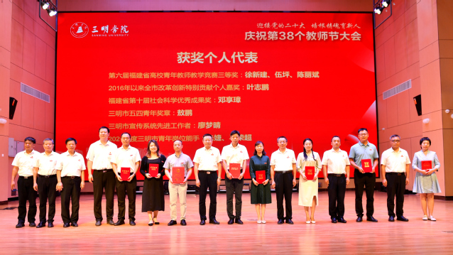 秋菊逸彩,桃李芬芳。9月9日下午,三明学院举办“迎接党的二十大,培根铸魂育新人”教师节庆祝大会,师生欢聚一堂,共同庆祝第38个教师节。