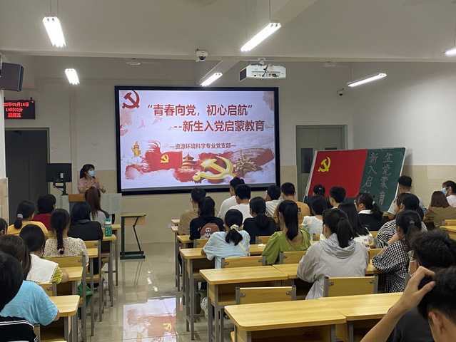 为积极引导新生端正入党动机,深入了解中国共产党的奋斗历程和精神内涵,帮助他们扣好人生第一粒扣子。9月16日,资源环境科学专业党支部、环境工程专业党支部在工科楼B303开展“青春向党,初心启航”新生入党启蒙教育活动,2022级环境工程专业新生、支部全体党员参加。