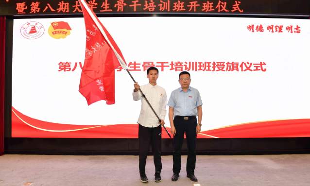 缅怀先烈砺斗志,赓续精神勇奋进。活动现场,92名第七期大骨班学员被准予毕业,9名学员被授予“优秀学员”荣誉证书,也昭示着第八期大骨班的正式启航。授旗、向学员代表赠书,是责任和使命的传承,更是锻炼品行和争做合格青年马克思主义者的初始。大骨班学员郑芷珊表示,“作为学生群体中的先锋力量,我们更应肩负起历史使命与时代发展重任,将对先烈们的崇敬与感恩化为实现中华民族伟大复兴的不竭动力。”