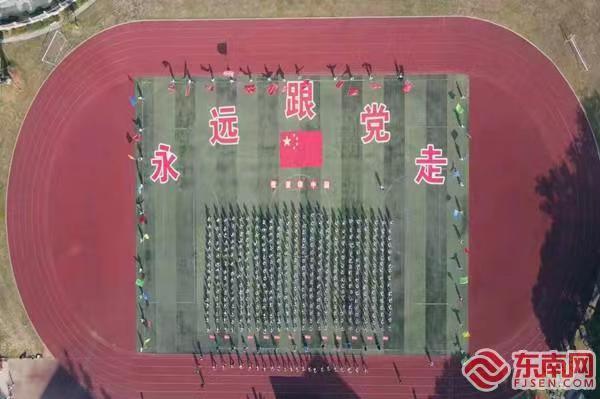 悠扬的音乐声中,十余米长的巨型国旗徐徐铺展开来,学生们摆出“我爱你中国”“永远跟党走”九个大字,充分展现着明院学子为实现中华民族伟大复兴中国梦而奋斗的决心。