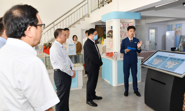 在明日明月综合馆,林生一行听取了馆内学生对学校IP形象设计与开发的介绍,观看了动画片《明日明月心向党》和各类文创产品。他赞扬学校大学生网络文化工作室建设取得的成绩,鼓励同学们充分发挥专业特长和聪明才智,创作出更多更好的网络文化作品,讲好红色故事,传承红色基因。