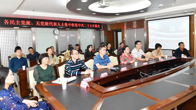 在行政楼六楼会议室,党外人士集中收听收看。