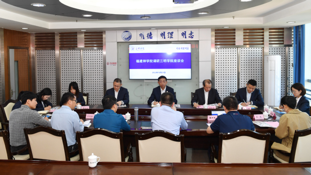 赖锦隆对岳清华一行的到来表示欢迎,希望双方以此次调研为契机,增进交流互动,促进共同发展。在交流座谈会上,廖景榕介绍了学校基本情况及近年来在人才培养、队伍建设、服务地方等方面取得的成绩,学工、教务等部门介绍了相关工作开展情况。岳清华表示,三明学院“三明三康”育人理念成效显著,在学生服务、教学管理等方面能够给予神学院有益借鉴,期待两校能够建立合作。会上,双方还就彼此关心的问题进行了交流,并达成合作意向。