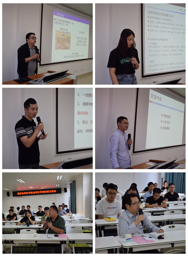 会议邀请近年来成果获批国家自然科学青年基金项目立项的陈风华、宫辽阔、李银、郑文辉四位博士围绕国家自然科学基金申报书撰写经验作了精彩的分享,重点强调申报题材的选择,研究基础与研究内容的匹配、拟解决的关键问题和科研课题可行性分析等内容,需要反复打磨,并邀请有经验的专家对申报书进行仔细辅导,同时强调要仔细研究失败的原因,指出申报创新点。随后,信息工程学院崔积适、管强两位领导交流了申报国家自然科学基金项目的体会,强调申报过程中高水平专家指导的重要性,细微处见功夫,要体现当前的研究基础、已经取得的科研成果以及今后科研工作努力方向等。