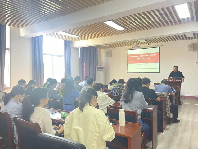 10月19日下午,马克思主义学院党总支副书记邹晓芟以《弘扬伟大建党精神,全面建设社会主义现代化国家——全面深入学习二十大精神》为题,为马克思主义学院全体教师讲授主题党课。