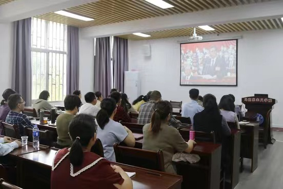 马克思主义学院副院长徐桂兰表示,习近平总书记的报告贯通历史、现实与未来,鼓舞人心,催人奋进,是闪耀着马克思主义真理光芒的纲领性文献。马克思主义学院全体教师要全面深入学习研究、阐释宣传好报告精神,并把报告精神融入大学生思想政治理论课各门课程,用党的科学理论武装青年,用党的初心使命感召青年,在向着全面建成社会主义现代化强国的第二个百年奋斗目标迈进的崭新征途上书写新的时代荣光。