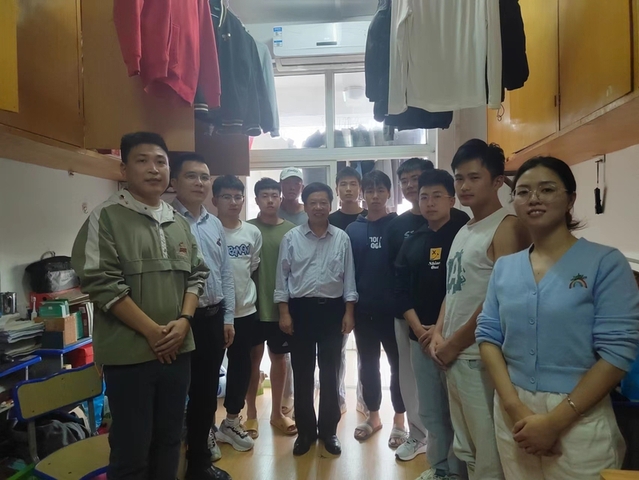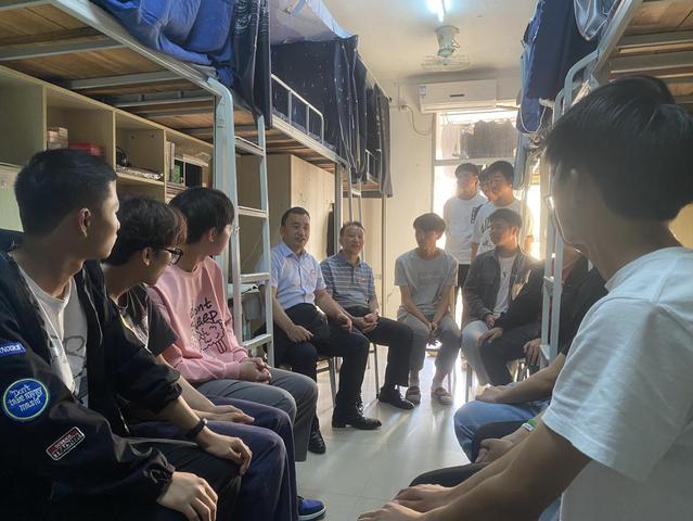 “同学你来自哪里?”“在学校习惯吗?”“专业学习有困难吗?”“认为学校哪方面的工作需要改进?”谢副校长走进宿舍便这样亲切的询问,一下子便消除了同学们的紧张情绪,拉近了心与心的距离。谢副校长从生活、学业、未来规划等方面与学生展开沟通交流,深入了解学生在校生活状态,结合专业的就业前景与大家畅谈未来规划,并就学生遇到的问题给予中肯的建议。他寄语同学们要以党的二十大精神为指引,加强专业学习,争做有理想、敢担当、能吃苦、肯奋斗的新时代好青年。同学们纷纷表示,来自学校的关爱与建议使他们倍感温暖、收获颇多,在以后的学习和工作中要增强信心,科学规划,提升自我。