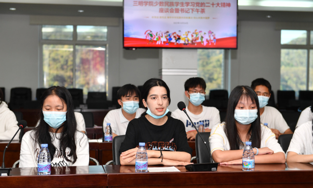 10月26日下午,三明学院少数民族学生学习党的二十大精神座谈会暨书记下午茶在行政楼八楼会议室举行。校党委书记赖锦隆,统战部、学生处负责人,马克思主义学院教师以及少数民族师生代表参加活动。