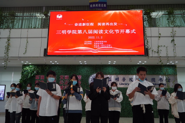开幕式上表彰了在2022年三明学院“世界读书日征文大赛”的获奖者、第三届福建省高校“学问杯”影评大赛的获奖者;读者协会志愿者为在场师生带来朗诵表演《少年中国说》《师说》和《韩非子》。