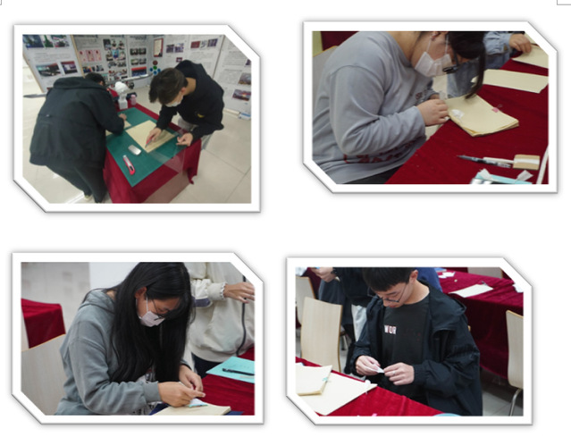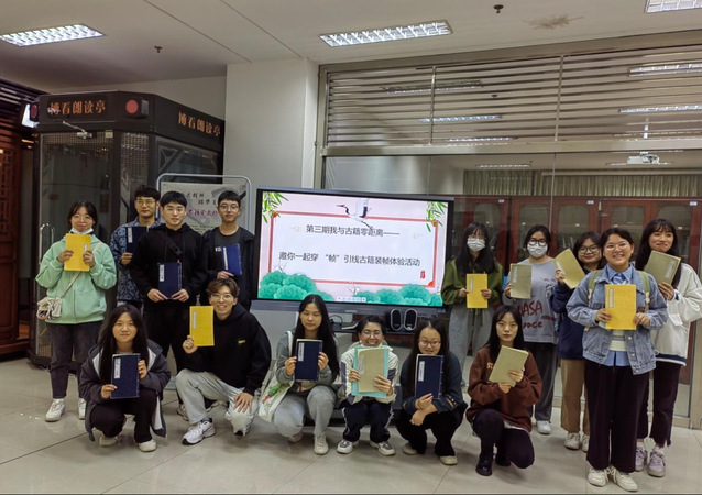 2022年11月2日,图书馆于在图书馆南一区组织开展第三期“我与古籍零距离”——邀你一起穿“帧”引线”古籍装帧体验活动”,通过聆听书籍演变史,体验古籍装帧技艺,感受古典技艺之美。