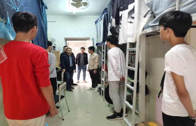 会后,楼栋党支部成员、联系导师以及楼栋管理人员走进学生社区看望学生。