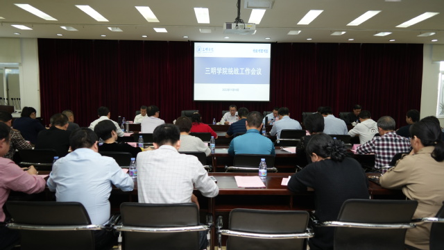 11月10日下午,三明学院在行政楼八楼会议室召开统战工作会议。校党委书记赖锦隆出席会议并讲话。全体在家校领导,学校统一战线工作领导小组成员、各二级学院统战委员、各民主党派及统战团体负责人参加会议。校党委廖景榕副书记主持会议,谢松明副校长传达学习中央和省委、市委统战工作会议精神。