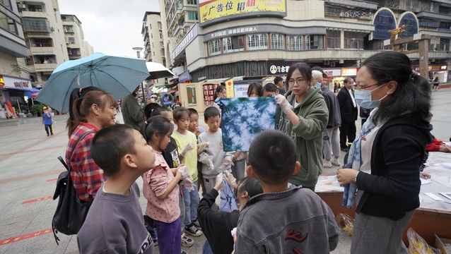 11月6日,艺术与设计学院在三明市三元区崇荣路腾飞广场开展草木染文化与技艺传习活动。