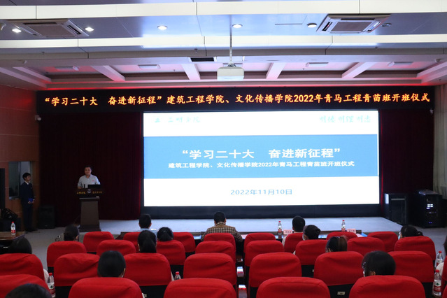 11月10日,建筑工程学院与文化传播学院联合举办2022年青苗班,学院党委书记、团委负责人出席开班仪式,120名团学骨干参加培训。