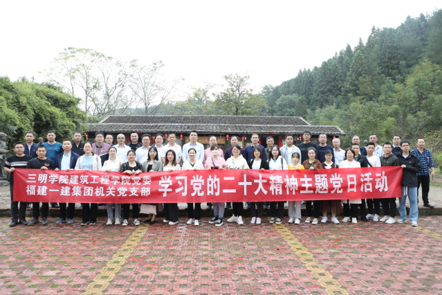 11月19日,建筑工程学院党委与福建一建集团机关党支部赴沙县俞邦村开展“奋进新征程、建功新时代”学习贯彻党的二十大精神主题党日活动。院企领导班子及双方党员50余人参加。