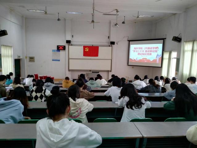 11月23日,海外学院(外国语学院)于外语楼B402举办“学习二十大,奋进新征程” 理论知识竞赛活动,全院学生党员积极参加,掀起了学习党的二十大精神热潮。