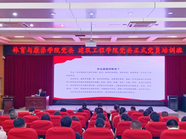 为进一步加强和推进意识形态工作,始终坚持正确的政治方向和价值取向,夯实全体党员团结奋斗的思想基础。11月16日,体育与康养学院、建筑工程学院师生党员专题培训班邀请校党委宣传部钟艳部长作《建设具有强大凝聚力和引领力的社会主义意识形态》专题讲座。体育与康养学院、建筑工程学院九十余名正式党员参加了此次讲座。