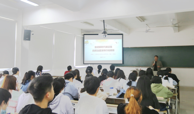 邹晓芟教授紧紧围绕党的二十大报告,从历史方位、大会主题、实践基础、理论指导、基本路径、根本保证、团结要求七个方面进行了全面系统深入的宣传解读。他强调,全体师生要原汁原味学原文,扎扎实实悟原理,深入领会其中蕴含的重要思想、重要观点、重大战略、重大举措;要不断增强政治认同、思想认同、理论认同、情感认同。他指出,学习贯彻党的二十大精神,是当前和今后一段时期的首要政治任务,要将党的二十大精神生动、深刻、系统地融入各门思想政治理论课的课堂教学和实践环节之中,为把学生培养成为担当民族复兴大任的时代新人作出应有的贡献。