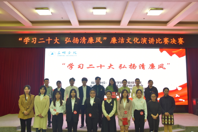 为学习贯彻党的二十大精神,深化校园廉洁文化建设,厚植大学生廉洁思想根基,由校纪委、校团委联合主办,文化传播学院承办的“学习二十大,弘扬清廉风”廉洁文化主题演讲比赛于11月30日在图书馆学术报告厅举行。