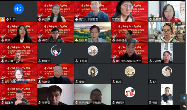 “我们要持续深化对党的二十大精神的学习理解,领悟其思想精髓、核心要义,在教学中坚持‘是什么’和‘为什么’,用学生喜闻乐见的形式,把党的二十大精神融入到课堂教学和实践教学环节中,让党的二十大精神入脑入心入行。”12月4日, 党的二十大精神融入思想政治理论课研讨会暨“1+N”手拉手集体备课会在“云端”展开,三明学院的吴智灵老师正在面对镜头讲述自己的备课思考。