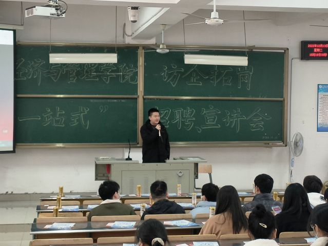 为更好的拓展2023届毕业生就业渠道,进一步做好我校毕业生就业工作。经济与管理学院于12月13日在厚德楼教室举办访企拓岗“一站式”招聘会活动。