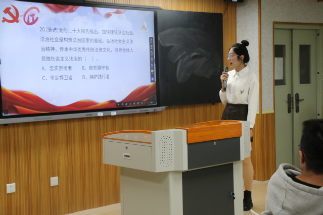 “什么是实现中华民族伟大复兴的必由之路?3、2、1,开始抢答!”2022年12月11日,一场紧张激烈的党的二十大精神知识抢答赛在信息工程学院如火如荼进行着。