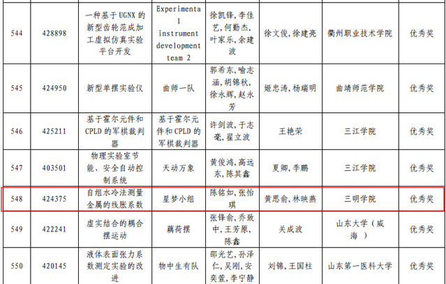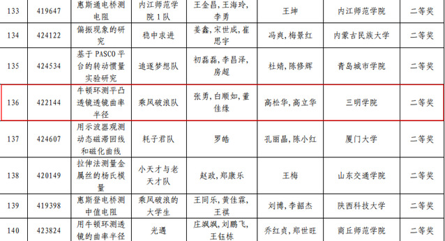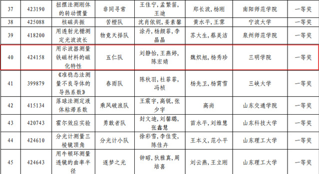 近日,在第八届全国大学生物理实验竞赛组委会公布的获奖名单中,三明学院机电工程学院参加的四支队伍全部获奖,分别获得一等奖1项、二等奖1项、优秀奖2项,这也是历史最好成绩。