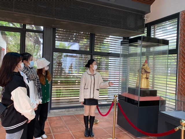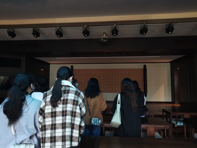 传承文化瑰宝,感知非遗之美。筼筜书院作为厦门第一座现代书院,赋予了传统“非遗”当代的审美内涵,使非遗文化回归人们视野。在闽南非物质文化遗产展中,实践队员们认真了解了厦门漆线雕手工技艺传承与创新,学习文化传承的技法。还有寿山石雕、莆田木雕、大漆工艺等都展现了非遗记忆独特的文化格调。在一刻一雕中,流露的不仅是源远流长的匠人精神,更是中华优秀传统文化的朝气蓬勃。在墙上还悬挂着习近平总书记会晤俄罗斯总统普金介绍在馆的非物质文化遗产的图片。实践队长林柳含,在参观和游览中,融合专业知识,讲解文化瑰宝,进一步展现非遗魅力。她说道:参观筼筜书院让我感受到了中华传统文化的魅力和时代创新,在今后的学习生活中我将继续脚踏实地、艰苦奋斗,努力成为堪当大任的时代青年。