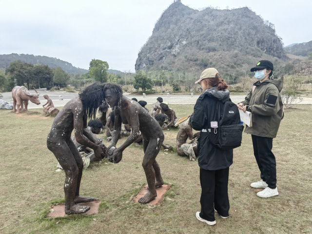调研过程中,实践队伍探索了船帆洞遗址,浏览了遗址博物馆,走访了考古研学营地......将“一廊万寿十二景,树绿花红果飘香”的生态文明和历史文明景观尽收眼底。在参观万寿岩博物馆的过程中,讲解员向实践队员讲述万寿岩遗址的历史文化、文物古迹和发展历程,通过讲解员的讲解和对文物的探究,大家对万寿岩有了更为生动立体的了解。遗址内石锛、石斧、骨器等物件让今人得以管窥历史典籍中缺载的史前时代历史;形制奇特的雕像、写满古文字的神秘贝叶书让中华民族东南海疆和海洋异域文明的文化记忆得以传承。与此同时实践队通过与工作人员的交谈,深入了解万寿岩研学旅游的发展现状,积极关注村民就业、家庭教育等问题,加深了对万寿岩周边产业发展的了解,同时也丰富了队员们在研学旅游等专业学科领域的认识。队员们用脚步丈量,以照片、访谈、视频记录等方式,一路参观一路跟随古人的步伐,感受到万寿岩遗址的探寻和保护不仅是展现民族文化大融合的根本要求,更是根植于文化底蕴,展现文化自信自强的重要途径。