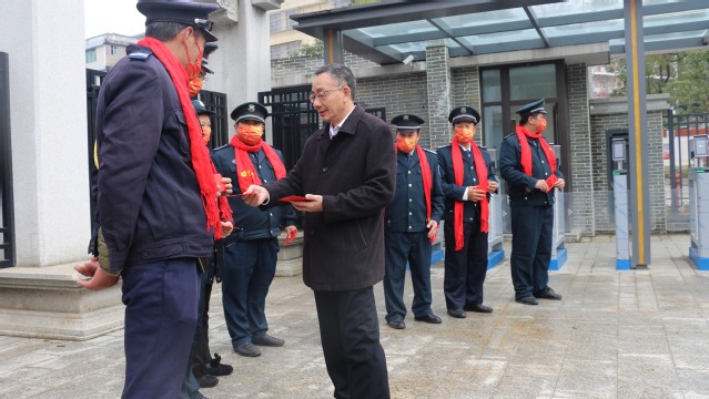 校领导一行先后来到北大门、保卫处、荆东派出所、行政楼、西大门等值班点,看望慰问正在值班的教职工,了解值班和安防保卫等情况,叮嘱他们注意防寒保暖、做好疫情防护,对大家在春节期间坚守岗位、辛勤工作表示衷心感谢,祝大家春节快乐。
