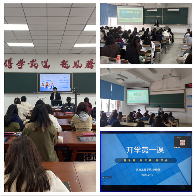 “同学们要做自身健康的第一责任人。戴口罩、勤洗手、少聚集、多通风,做好个人防护。”“交通安全要牢记,文明出行讲礼仪。”……围绕疫情防控、交通安全、防范诈骗等主题开展的安全教育也是“开学第一课”的重点。通过开展主题班会、走访学生宿舍、推文宣传等形势,以案例讲解、政策解读和视频观看等载体宣传,线上线下联动,各班级扎实开展新学期安全教育,有效强化学生的安全意识和自我防护能力。