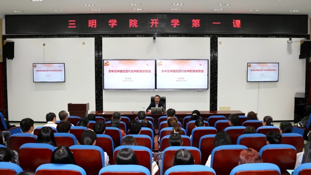 3月10日,三明学院党委书记赖锦隆以《青年在中国式现代化中的使命担当》为题,面向2020级小学教育专业青年师生讲授“开学第一课”。